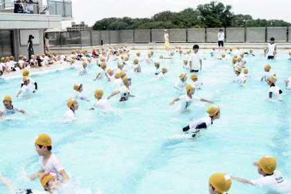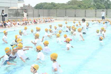 まだまだ十分に泳げる児童は少ない一年生ですが、着衣水泳を体験しました。