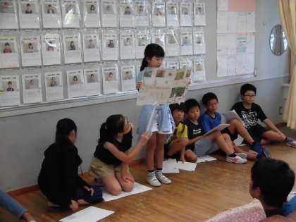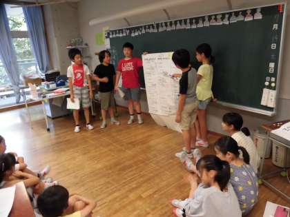 5年生一人一人が決めたテーマを課題追求し4年生に伝えました。