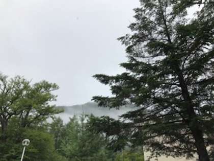 日光林間学園、朝から雨が降っています。