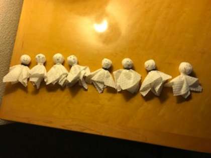 可愛らしいてるてる坊主が並んでいました。