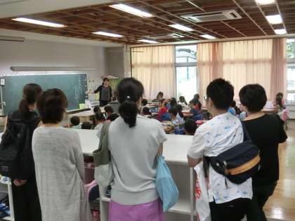 土曜授業参観に、大勢の保護者、地域の皆様に