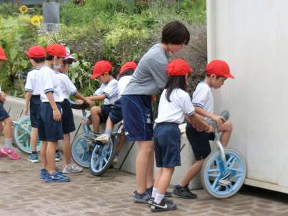 一輪車や竹馬を使っての、「うごき つくりあそび」や