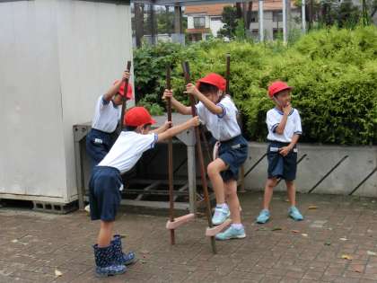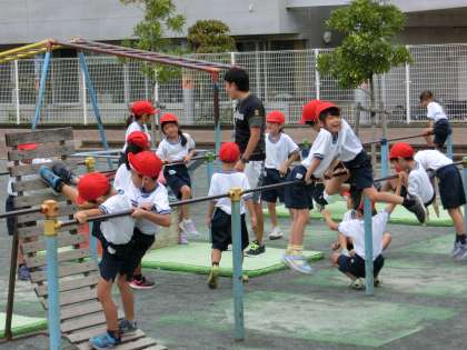 用具を使っての運動や、器械運動の基礎を築いていきます。