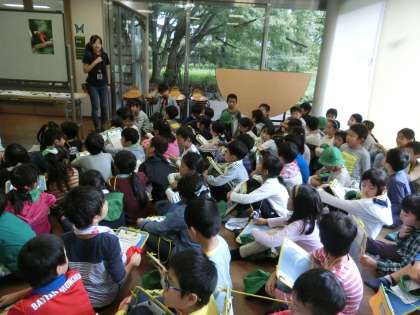 1組、4組、5組が生活科見学にすみれば自然庭園へ行きました。