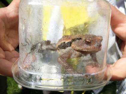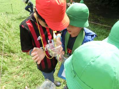 子供たちは、バッタやカエル、ヒガンバナなど、