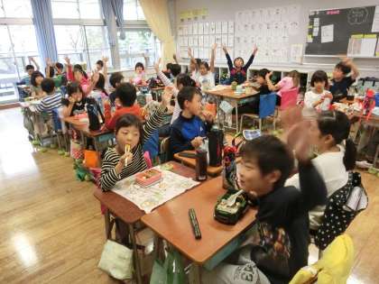 自然庭園で出会った、昆虫やカエルの話題で賑わっていました。