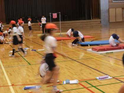 若松先生の指導に、真剣に応え、一生懸命にマット運動を楽しんでいました。