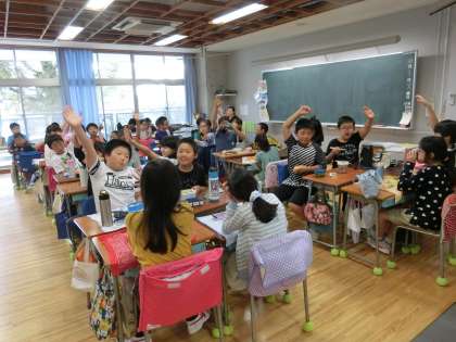 ふたクラスとも、3分の2くらいの子が手を挙げて応えてくれました。