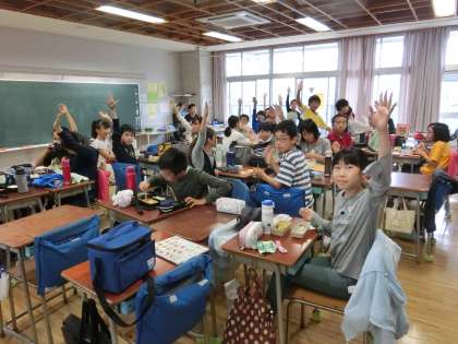 「給食を心待ちにしている人?」では、