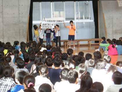それぞれの標語を、よい例と悪い例で演じながら