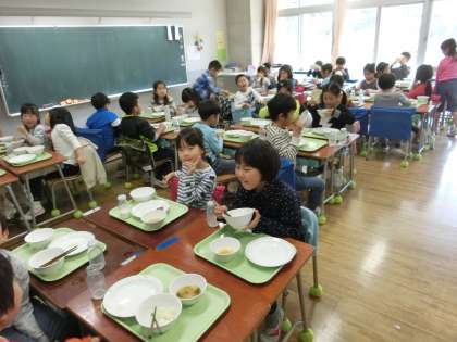給食も、笑顔いっぱい、とても美味しくいただいていました。