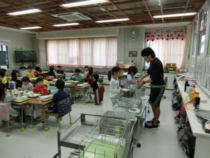 1学期中に培った給食時間のノウハウを思い出し、発揮し、大きな混乱なく、