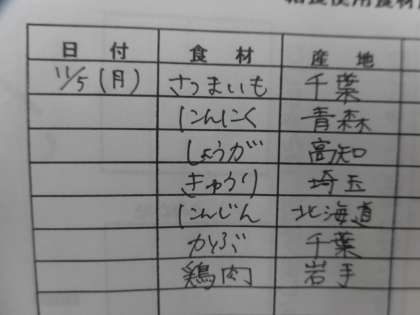 11月5日(月)の給食