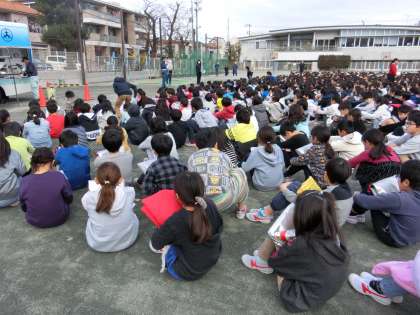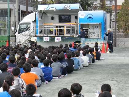 この後は、4年生全員が起震車による地震体験と煙中訓練を行います。