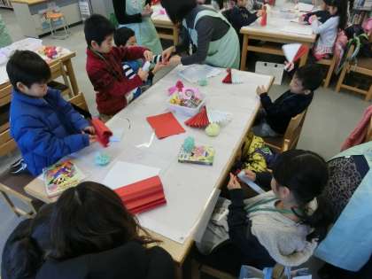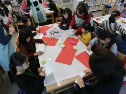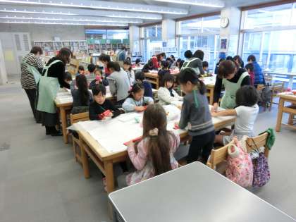 大勢の子供たちが参加し、図書室開放運営委員の方々に