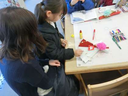 今日の図書室開放イベント「お正月飾り」を始める前に