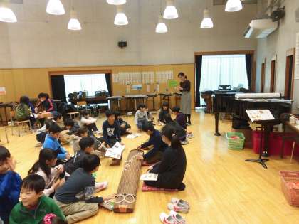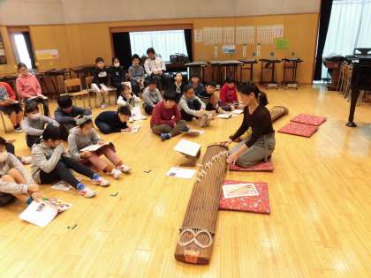 5年生は、土曜日の和楽器鑑賞教室に引き続き、今日は箏に挑戦しました。