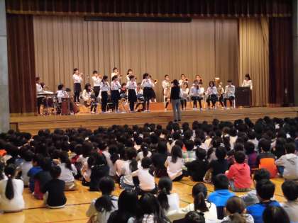 演奏が終わり、校長先生からお褒めの言葉をいただき、