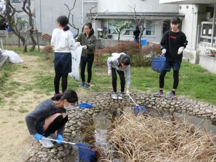 そんなことを考えた子どもの発案でおたまが池の清掃を行いました。