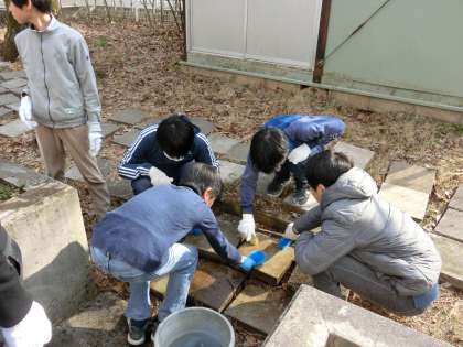 熱心に雑草を抜いたり岩を磨いたりする姿が見られました。