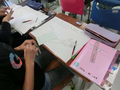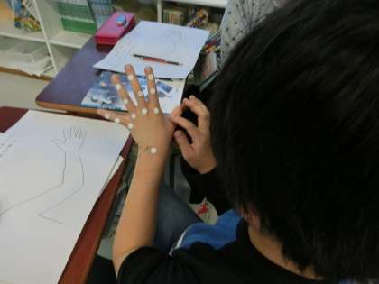 手のひらが一枚の平たい骨を想像している子もいました。