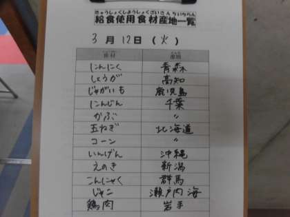 3月12日(火)の給食