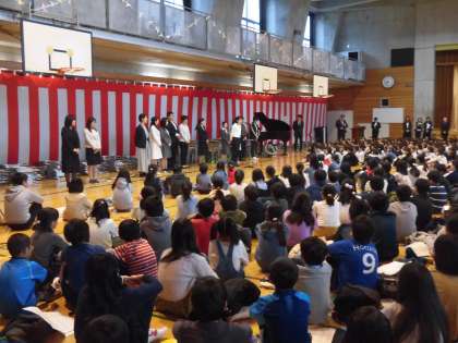 「ぼくは、何組だろう。」「あっ同じクラスだねえ。」