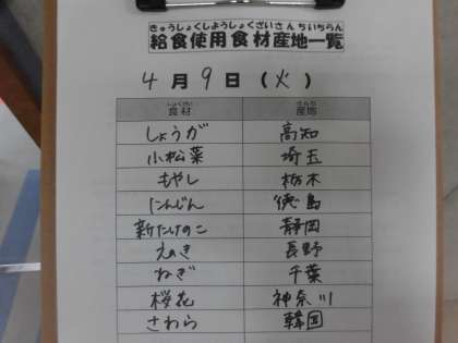 4月9日(火)の給食