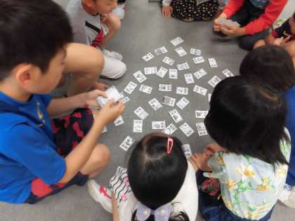 読み聞かせの後は、みんなで楽しめるカルタで遊んでくれました。