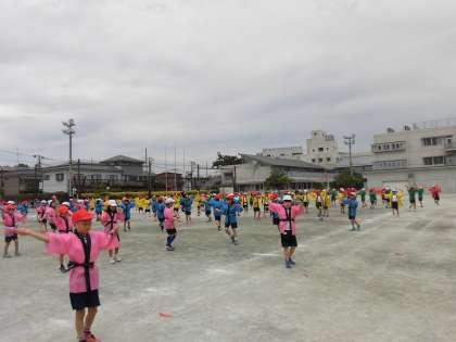 今日は、クラスカラーのはっぴをきてダンスの練習をしました。
