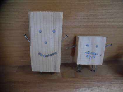 今日は、万力で木材をはさみ、のこぎりで切ってやすりをかけ、くぎを打ったり接着をしたりして小さな工作をしました。