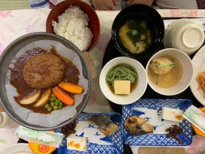洋風ハンバーグデミグラスソース(ポテト、人参、インゲン添え)