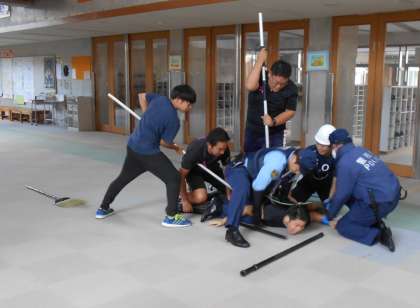 警察が到着し、不審者を確保したところで訓練終了となりました。