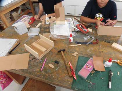 板材や角材を材料に、いろいろな道具を使用して、自分が使いたい”入れ物”を製作しています。