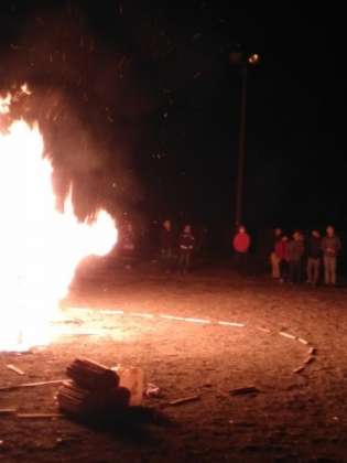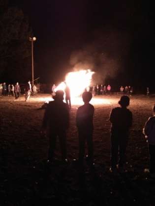 村の庭に集合し、キャンプファイヤーの始まりです。