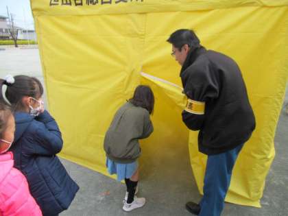 煙中訓練では、口をしっかりと覆うこと、姿勢を