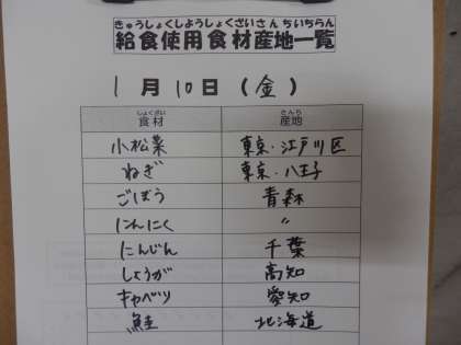 1月の給食に先生方の得意料理や