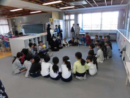 新しい年が始まり、最初の花の子活動(たてわり遊び)がありました。6年生のリーダーを中心に遊びを準備して、進行をします。1月ということで、百人一首をしている班もありました。「全学年仲良く遊ぼう」をめあてに、楽しく仲良く、笑顔がいっぱいの朝の活動でした。(更新348回)