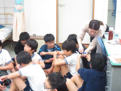 発育測定の後は、保健指導「アルコールとの適切なきょりのとり方」について学習しました。
