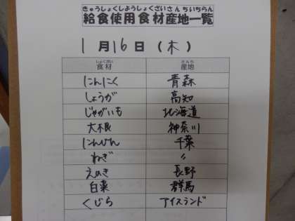 1月16日(木)の給食