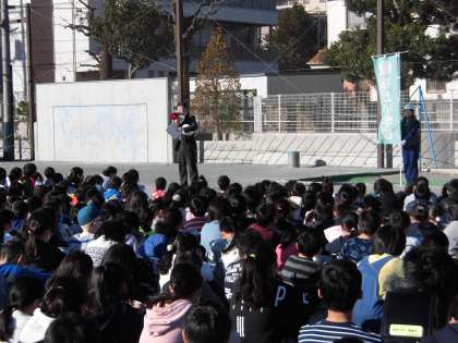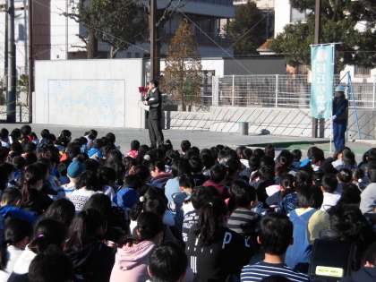 2月6日(木)、登校中に地震が起きた場合の避難訓練を行いました。