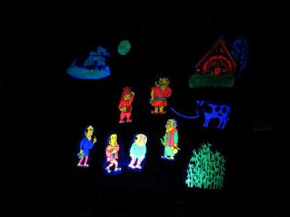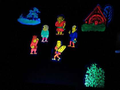 ブラックライトによる幻想的な演出で、子供たちは瞬く間に物語