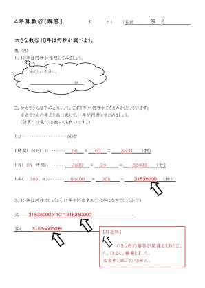 また、ホームページ上にも「【訂正版】算数課題6〜10 解答」を掲載してあります。