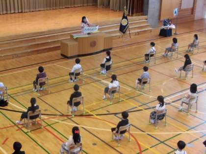 感染症対策を講じ、前半に1組と2組、後半を3組と