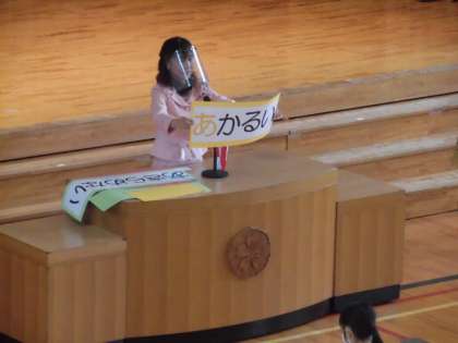 「あ」いさつ 「あ」きらめない 「あ」かるいの