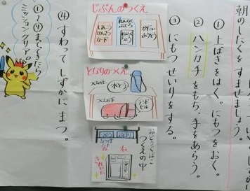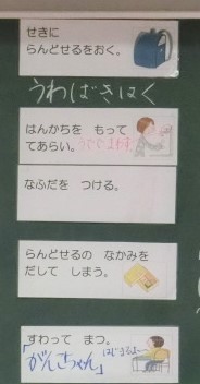 画像は、1・2年生の教室に掲示していたものです。何をすればよいのか見れば、皆が分かるものですね。