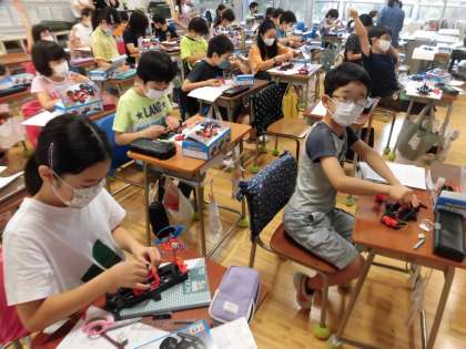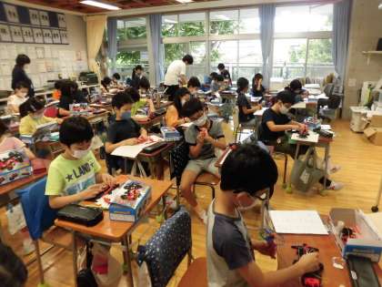 友達のモーターと速さを比べ合ったり、「回らない。」と困っている友達に、「ここがつながっていないよ。」など子どもたちどうしで声をかけ合い実験に取り組んだりする姿から、共に学び合う頼もしい姿勢が見られました。
