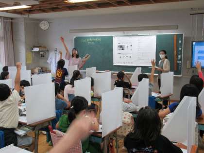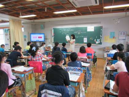 6年生は海外から来た人に、日本の行事を紹介するというめあてに沿って学習を進めています。今回は、季節ごとの日本の行事で有名なものを英語でどう表現するのかについて文字や発音をとおして学んでいます。