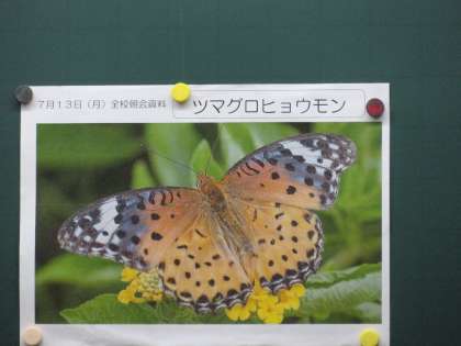 7月13日(月)の全校朝会は、1匹の蝶からお話が始まります。