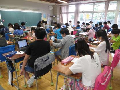 6年生は総合の学習でタブレットを使って、1年生へ手紙を作りました。「ようやく入学式ができてよかったね。」「一緒に遊べるようになったら、楽しく遊ぼうね。」など1年生が読んで喜ぶ内容がたくさん書かれていました。学校のよさについて書いている子どももいました。桜丘小のよさを考え、下級生に伝える姿勢に感心しました。